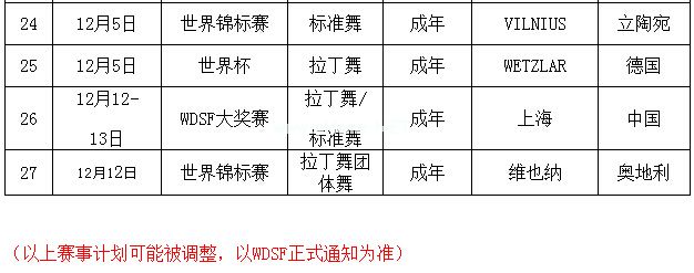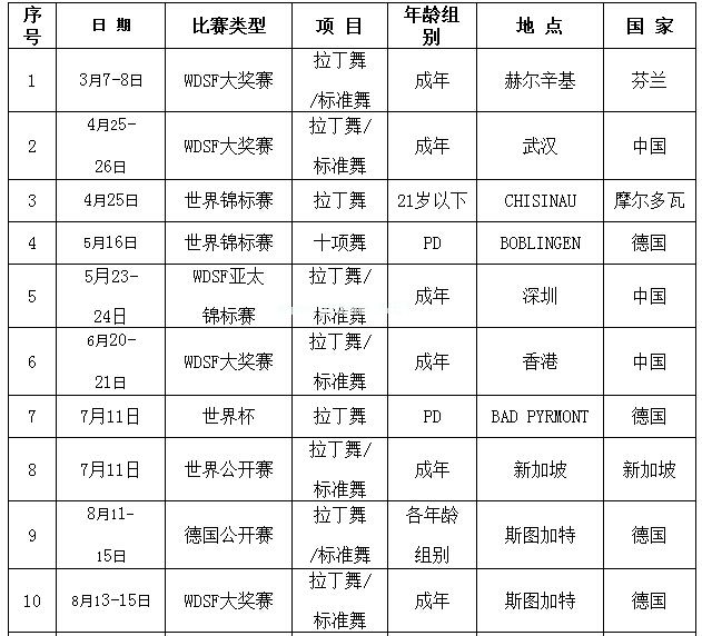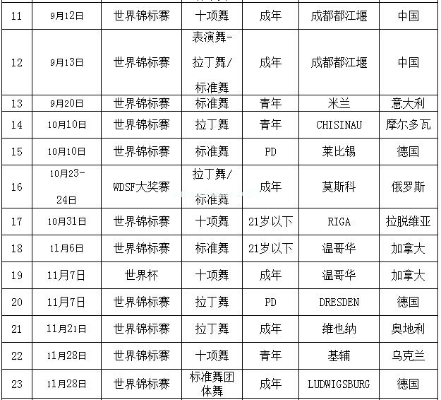 导读:世界体育舞蹈联合会(WDSF)2015年度主要赛事计划表
