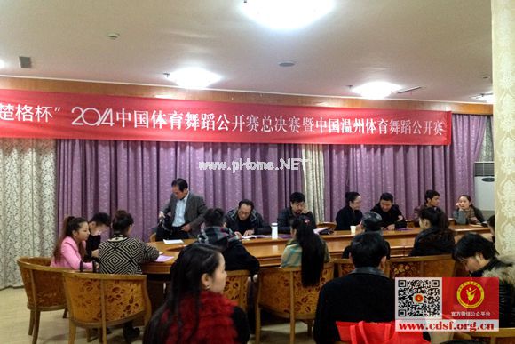 中国体育舞蹈网12月26日温州讯 今日伴随着圣诞节的气氛,我们迎来了2014中国体育舞蹈公开赛总决赛。下午17:30分,“楚格杯”2014年中国体育舞蹈公开赛总决赛暨2014年中国•温州体育舞蹈公开赛总决赛领队会在温州市体育馆召开,纪律监察及仲裁委员陈冰女士,竞赛长张晓东先生,裁判长沈毅先生,礼宾长段刚先生以及来自全国各代表队的领队出席了此次会议。